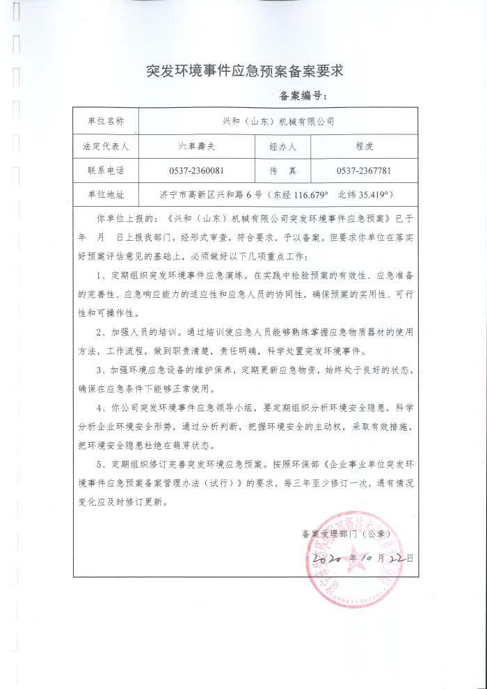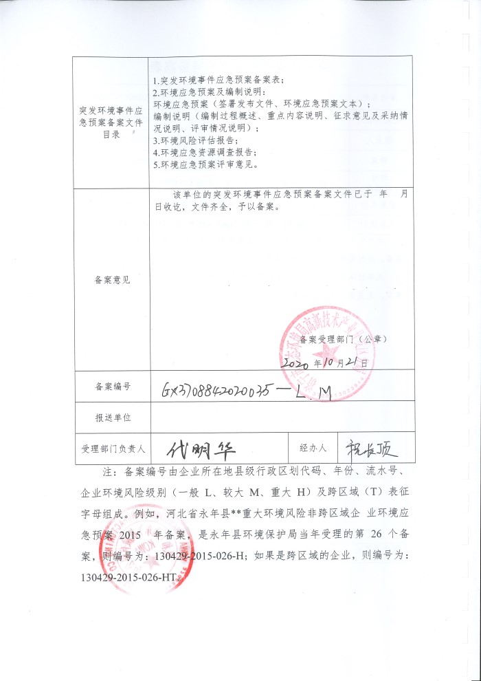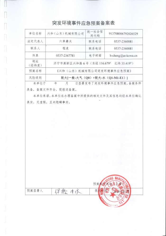環(huán)境應(yīng)急預(yù)案備案表(第四次修訂)