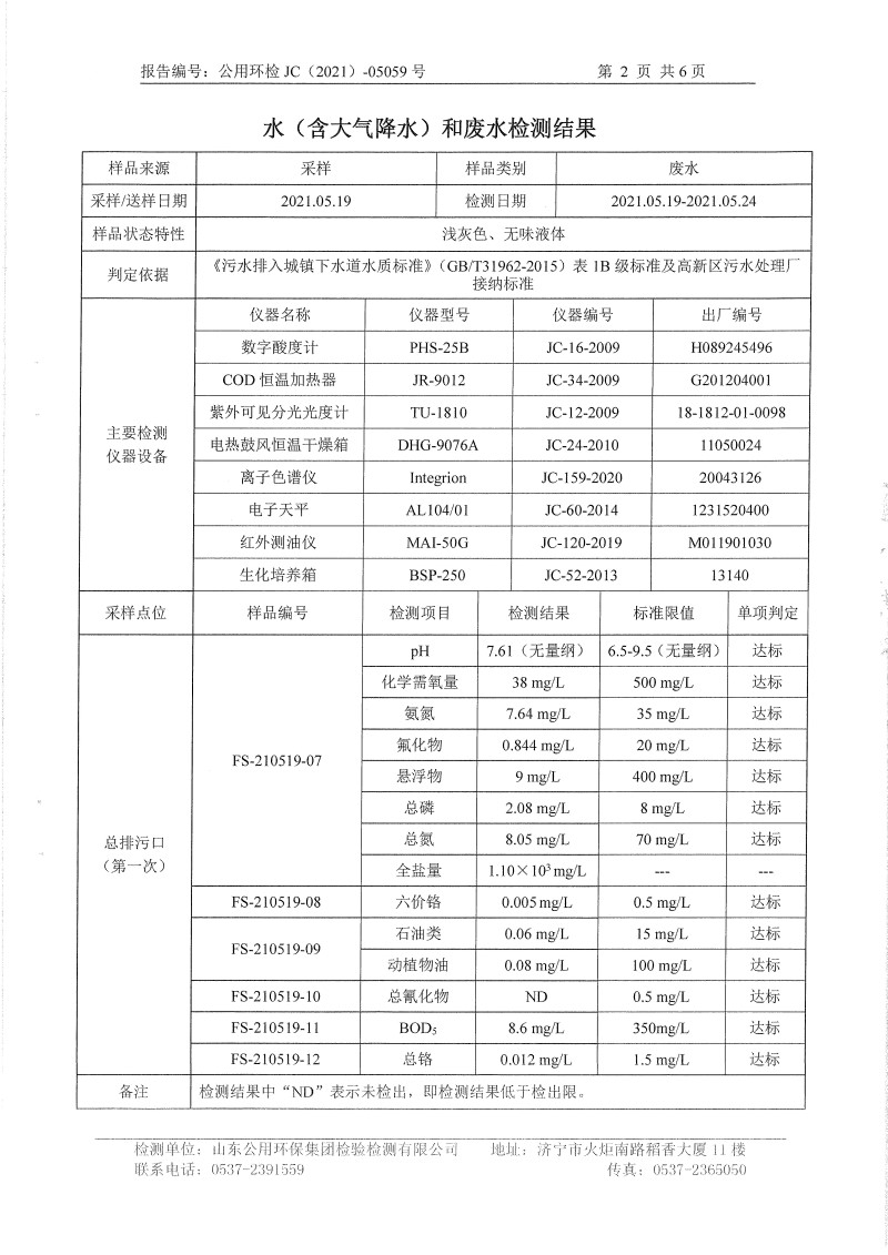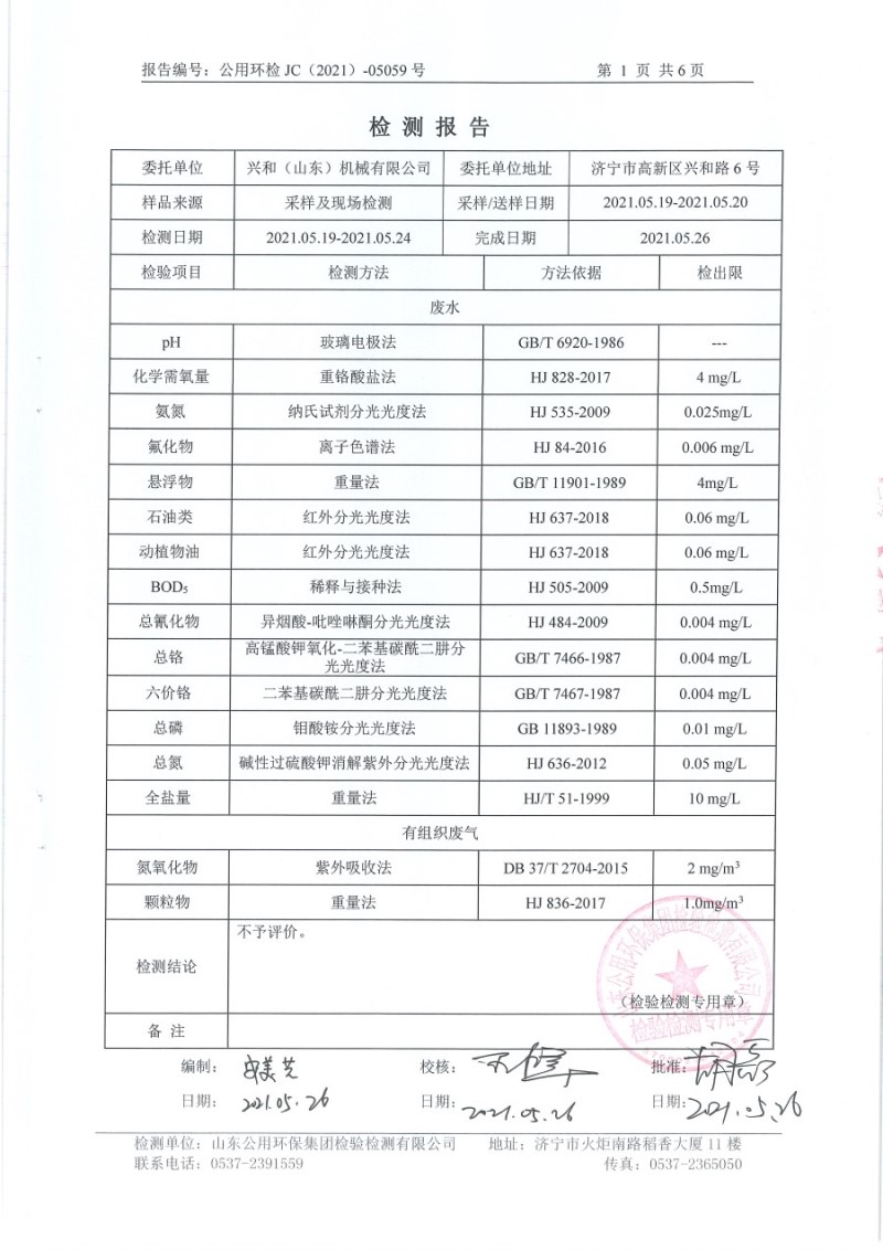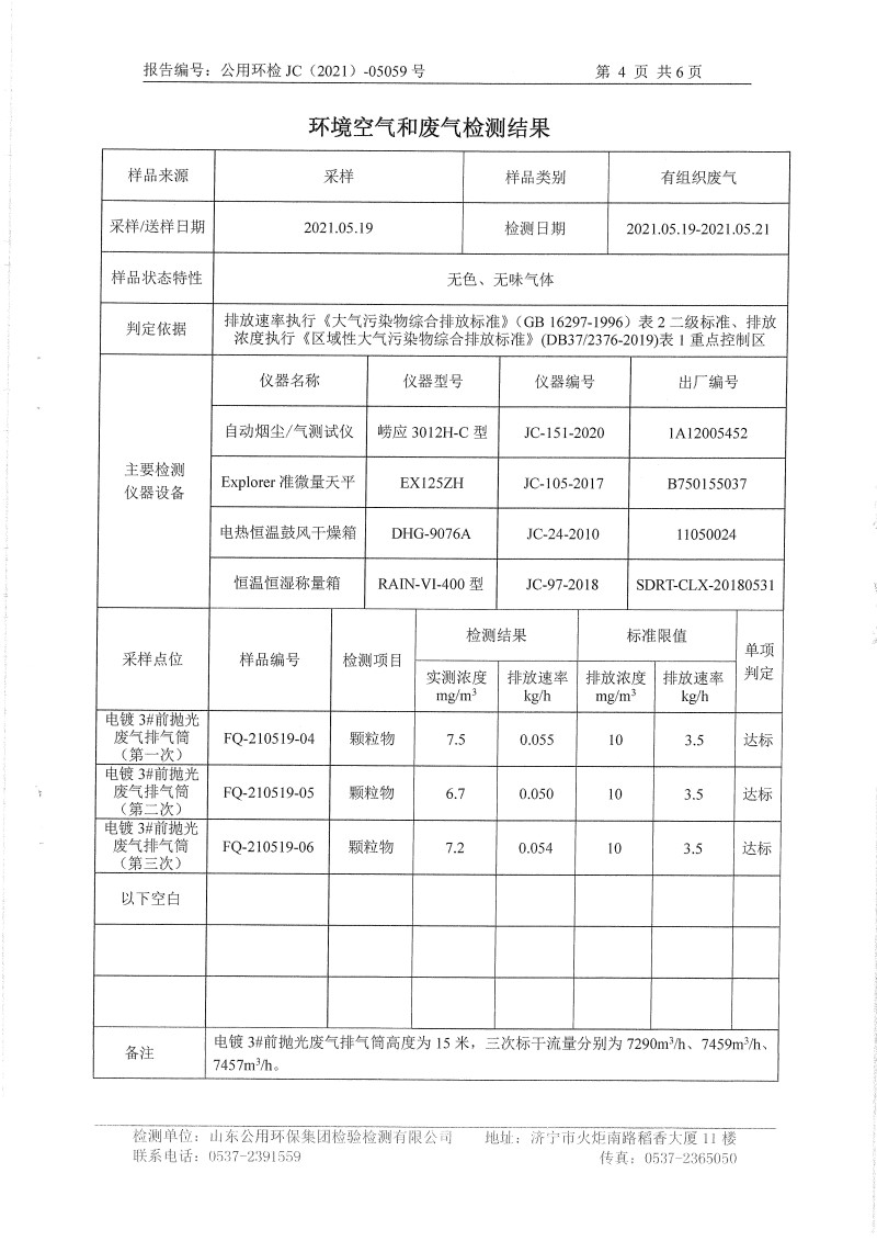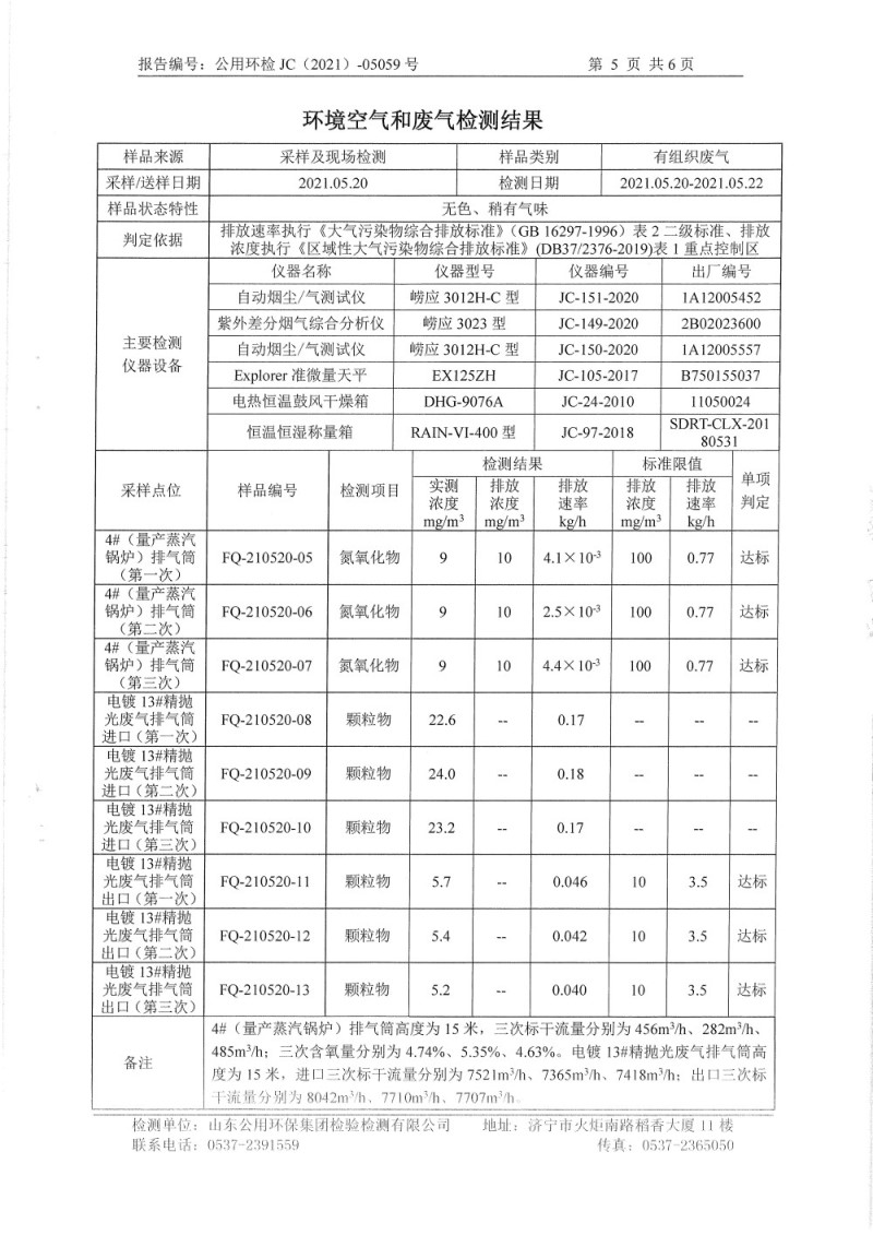 2021年5月檢測(cè)報(bào)告氮氧化物半年度檢測(cè)生活污水電鍍前 精拋光顆粒物