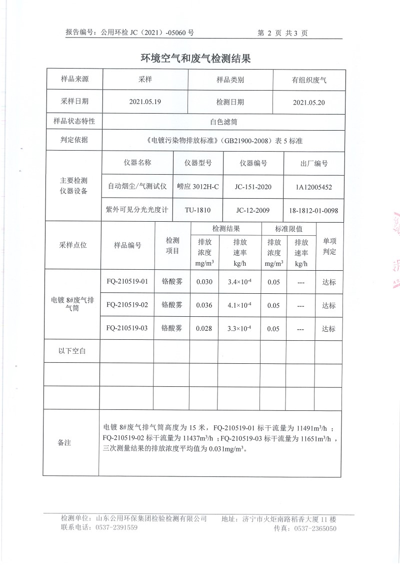 2021年5月8#排氣筒鉻酸霧檢測報(bào)告