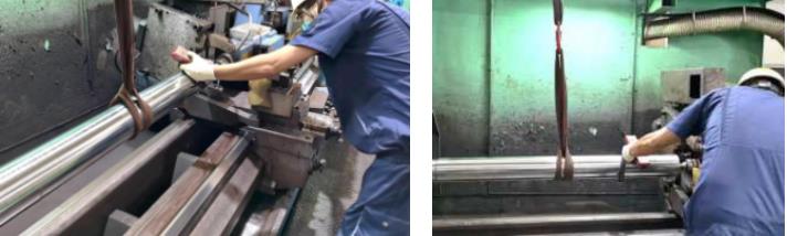 上手動吊裝加工,效率慢,平均1.6本/h,無法滿足生產(chǎn)納期。